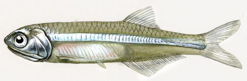 Body Greenish in life, with blue reflections dorsal to narrow silvery longitudinal stripe that is prominent from the base of caudal fin, but not as prominent as in the striped anchovy. |