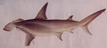 The Greater Hammerhead prefer the open sea, but often ventures close to shore, and especially likes the deep Gulf Coast passes when schools of big tarpon are present. |