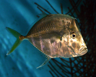 Both the Lookdown and the Atlantic Moonfish are flat, silvery fish of similar size, appearance and habits. Moreover, they are often found in company with each other, which add to the angler's confusion. The Lookdown has a sloping, concave head and long streamers, running off the dorsal and anal fins. These streamers, however, are not nearly so long and flowing as those of the juvenile African Pompano. The head of the Moonfish is less blunted than that of the Lookdown, and all its fins are short. |