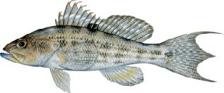 This seabass feeds on the bottom, taking squid, crustaceans, and small fish.  |