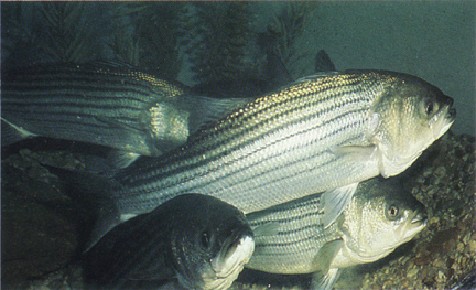 The striped bass are known for their size reaching over 4 feet in length and getting over 50 pounds in weight. |